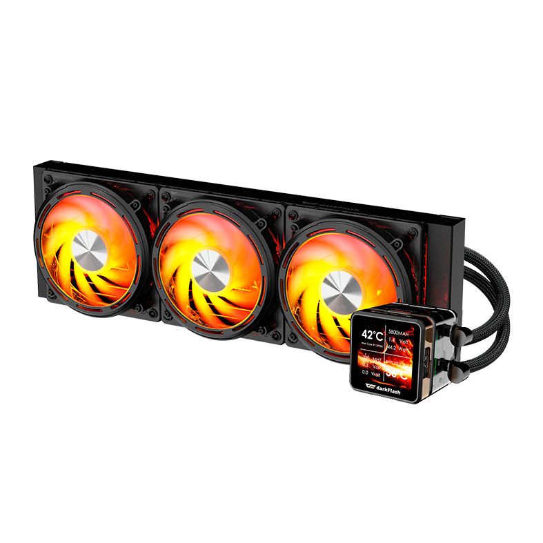 Water Cooler Aigo Darkflash DE360, ARGB, Display IPS 2.88 Pol, 360mm, Preto, DE-360-BK