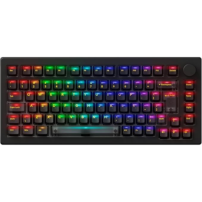 Teclado Gamer Mecânico Akko 5075S Clear ABNT2 RGB, Preto, Switch Jelly Black