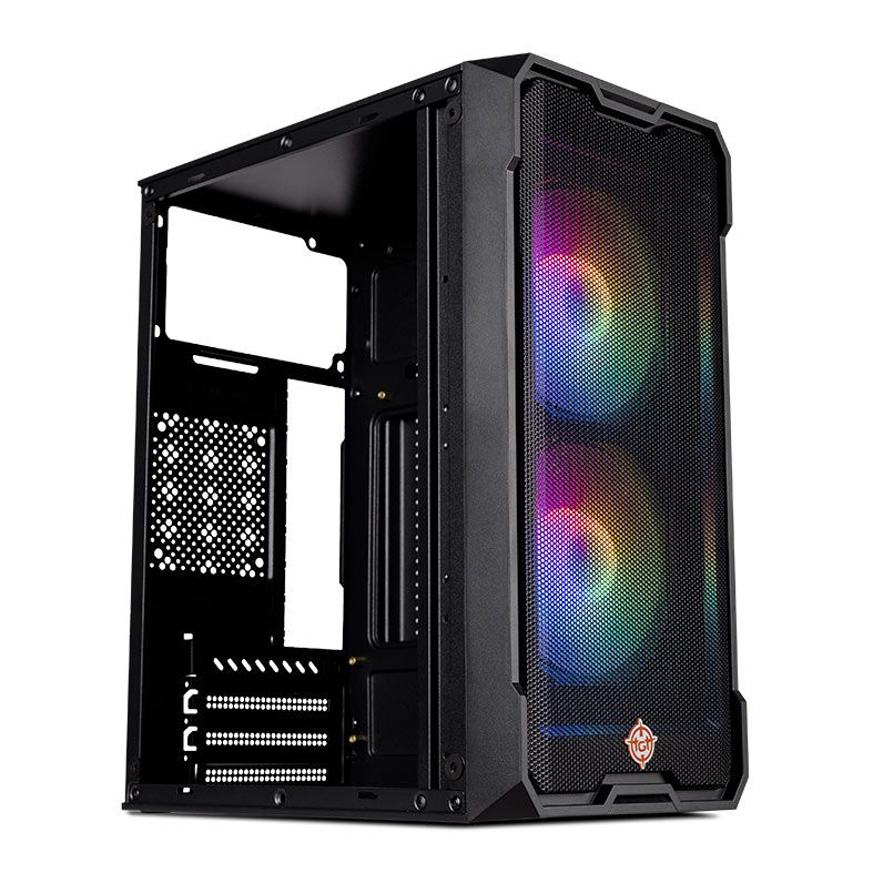Gabinete Gamer TGT Jester V2,Rainbow,Mid-Tower,Lateral de Acrilico,Com 2 Fans,Preto TGT-JSRV2-BKGF02