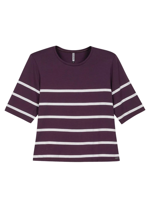 Marialícia - Blusa Feminina Manga Curta Listrada Roxo