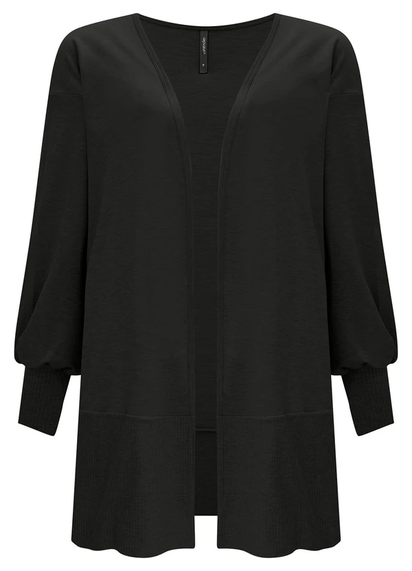 Lunender - Cardigan Alongado com Punho em Moletom Preto