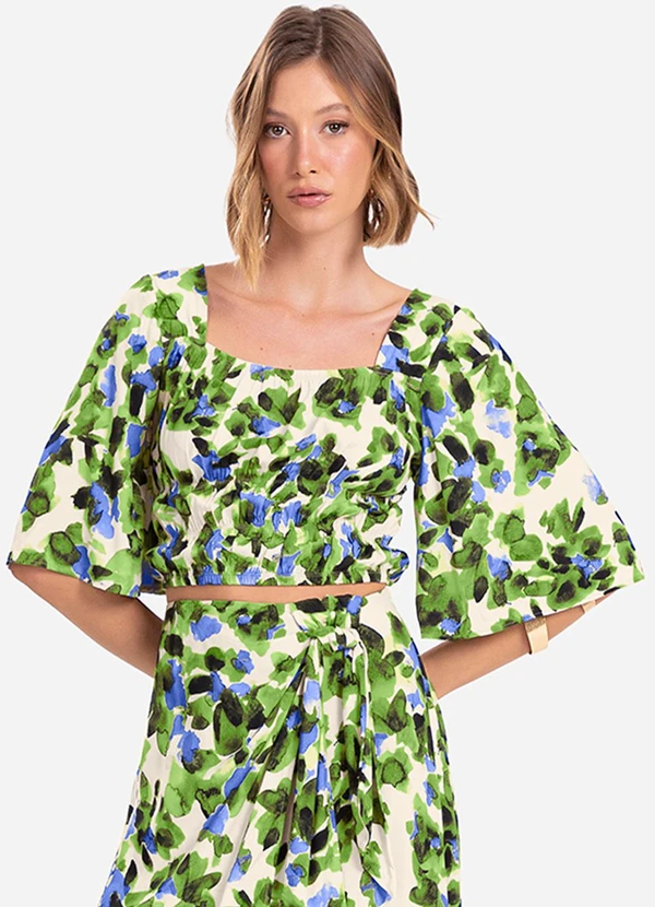 Lunender - Blusa Decote Degagê e Torção nos Ombros Verde