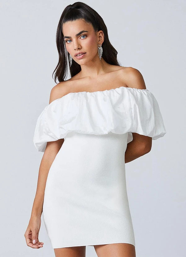 Quintess - Vestido Risca de Giz Branco em Alfaiataria