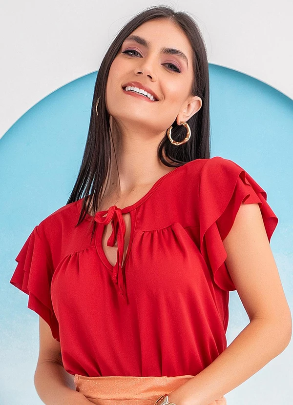 Rosalie - Blusa Vermelho em Malha com Elastano