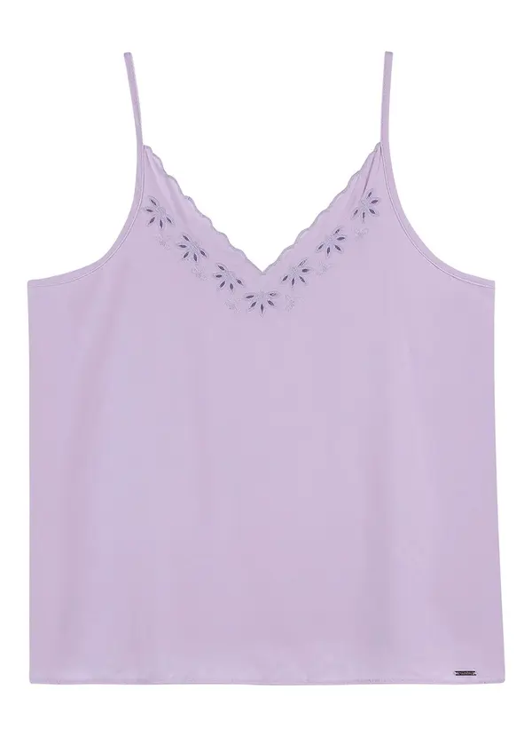 Marialícia - Regata Detalhe Bordado Vazado Lilás