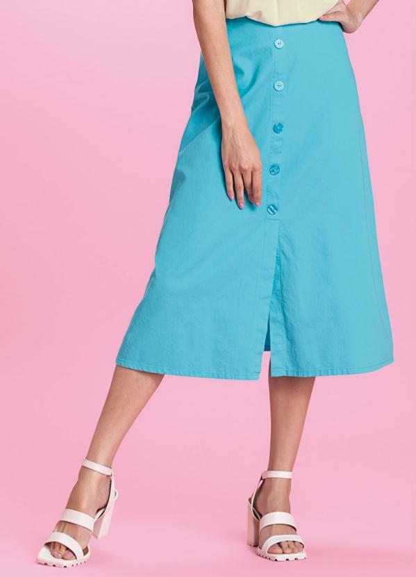 Marialícia - Saia Midi com Fenda Comfy Azul