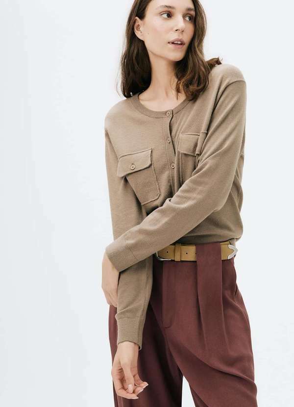 Hering - Cardigan Feminino Decore Redondo em Trico Marrom