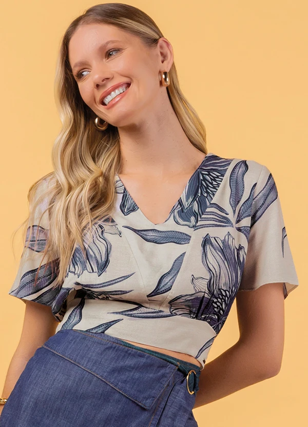 Marialícia - Blusa Feminina Cropped Decote V Azul