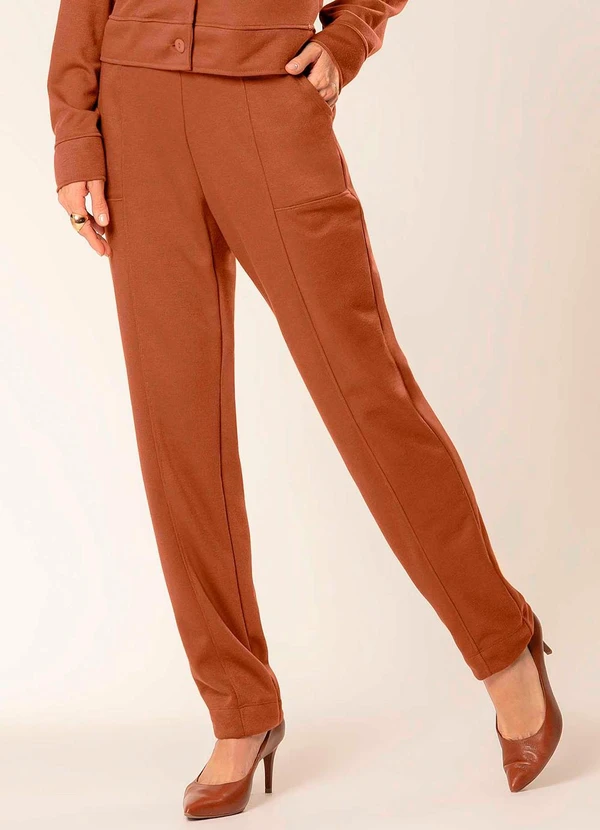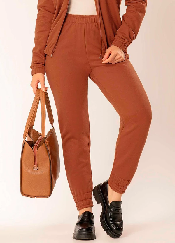 Cativa - Calça de Moletom Peluciada com Elástico Marrom