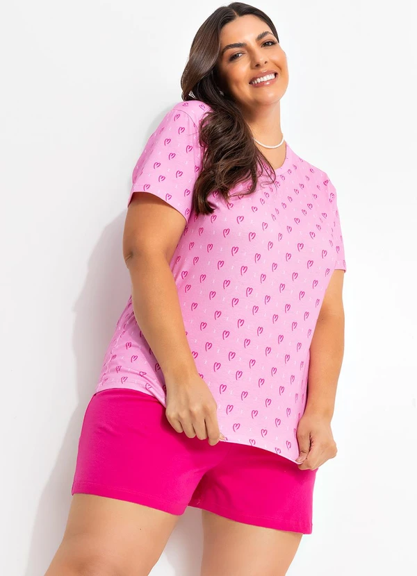 Marguerite - Pijama Corações Coloridos em Malha de Algodão