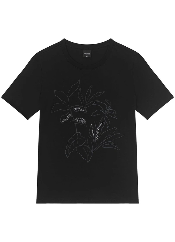 Malwee - Camiseta Preto Tropical com Bordado