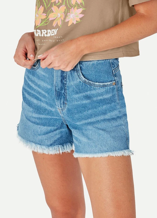 Malwee - Shorts Mom Jeans Cintura Alta Azul