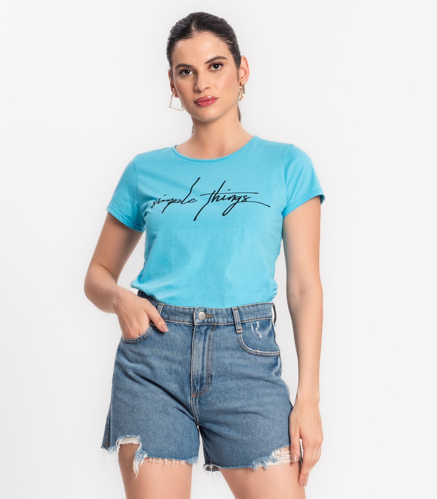 Lunender - T-Shirt em Meia Malha com Estampa Balanço Preto