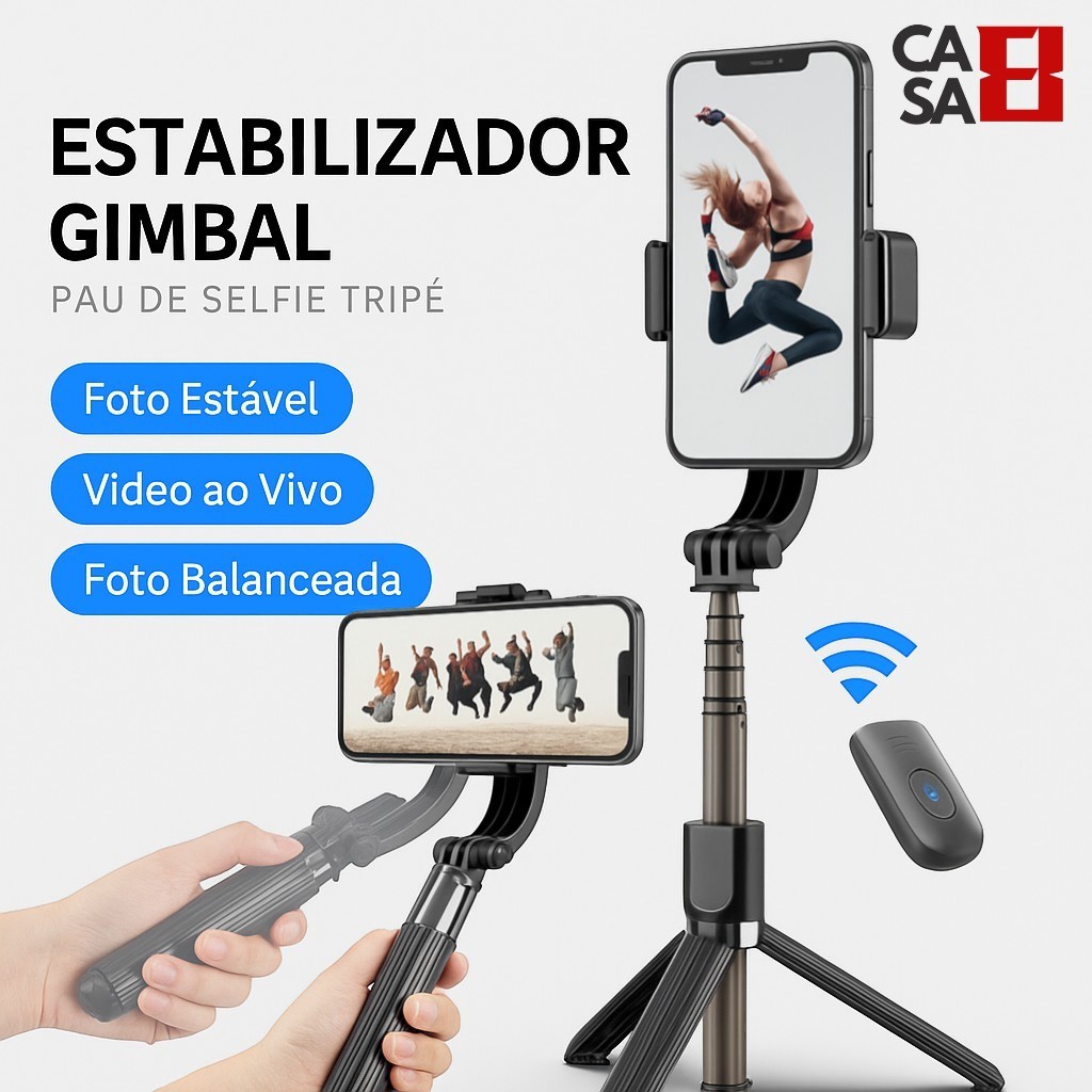 Estabilizador para Celular Gimbal Tripé 86cm Bastão Selfie Bluetooth L08 para Tiktok Live