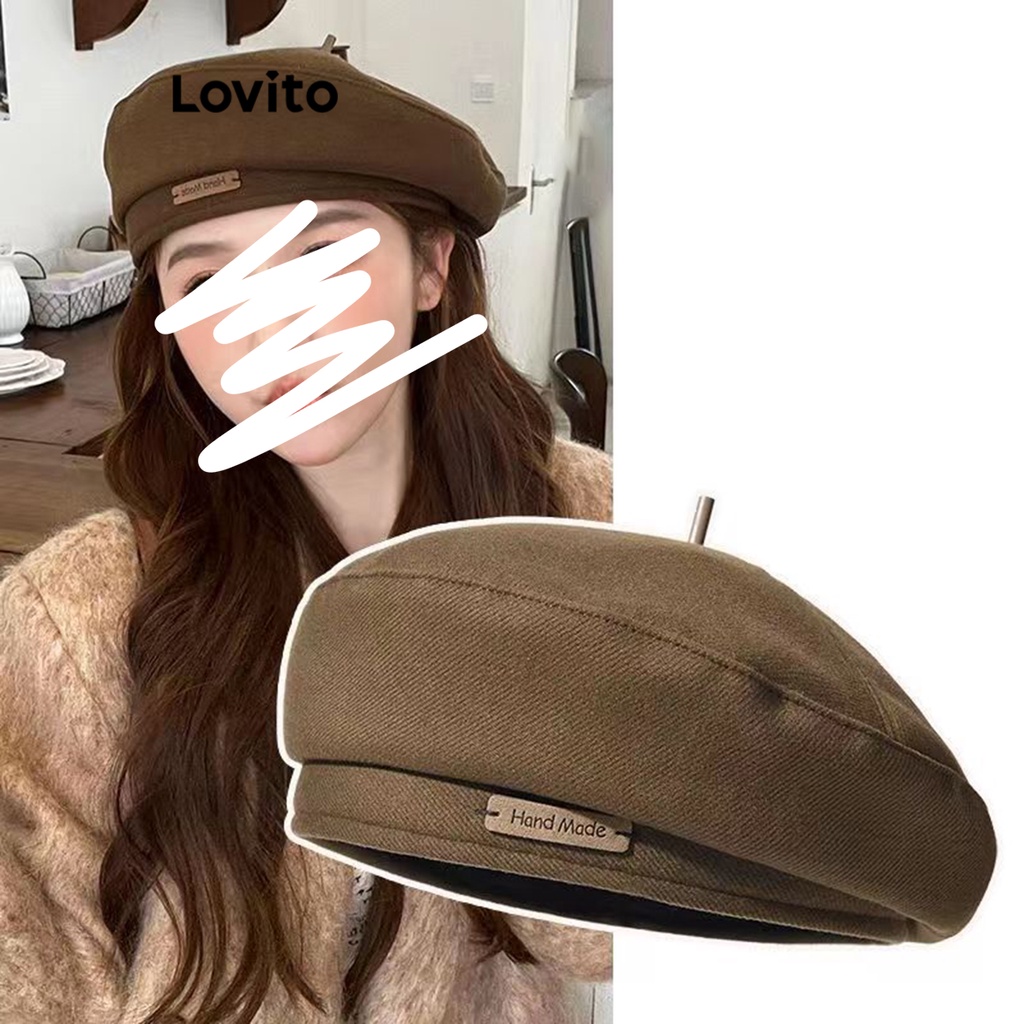 Lovito Casual Chapéu Feminino Liso com Patch LFA08162 (Café/Off White/Preto)