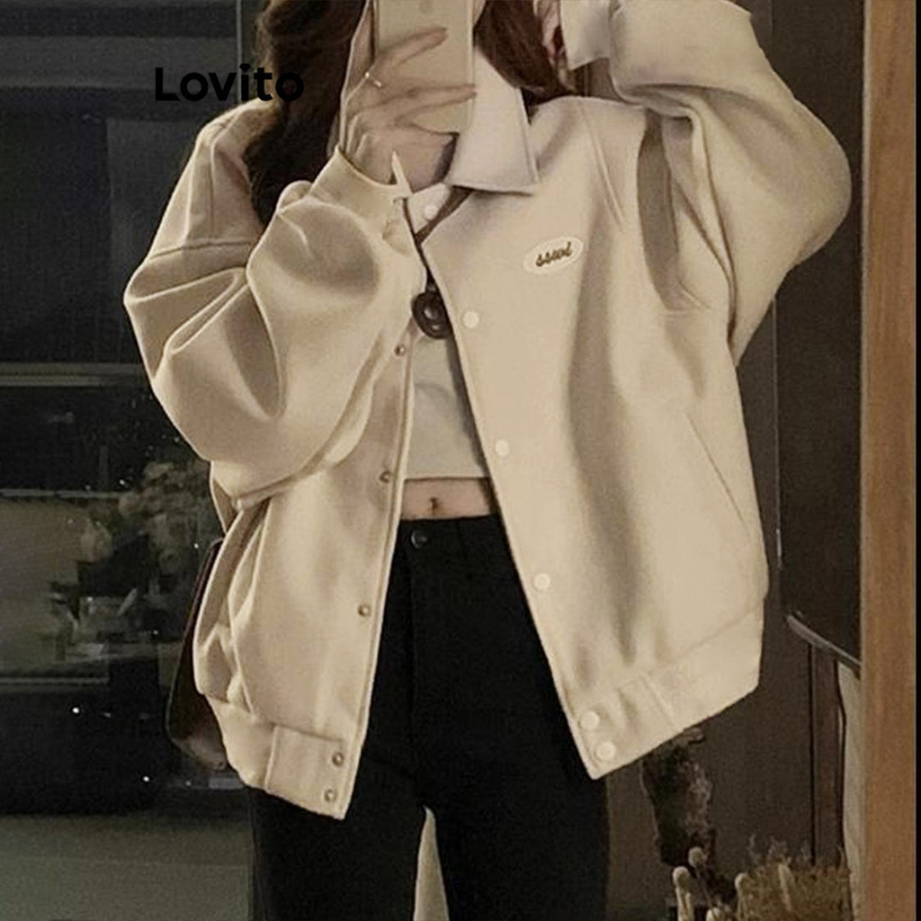 Lovito Casaco Casual De Manga Comprida Com Botão Liso Para Mulheres LNA38102 (Off White)
