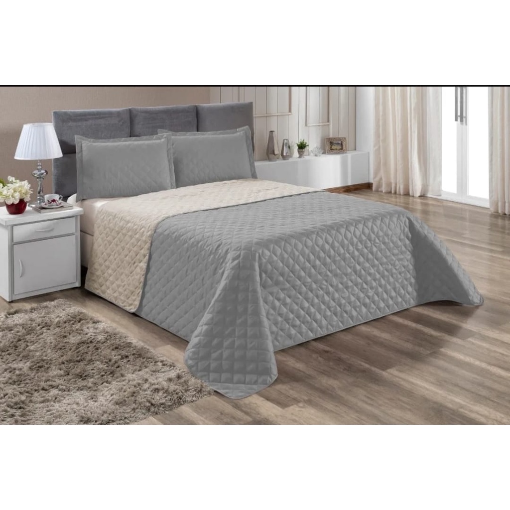 Kit Cobre Leito Colcha Cama King Size Cobreleito Dupla Face 200 Fios Tresse Matelassê Conjunto 3 Peças 260x280