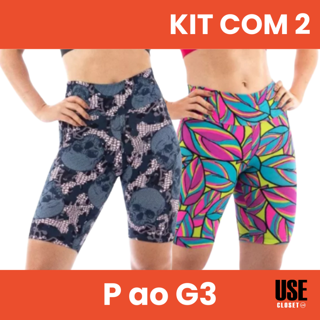 Kit com 2 Bermudas Legging Ginástica Fitness Feminina P ao GG e Plus Size
