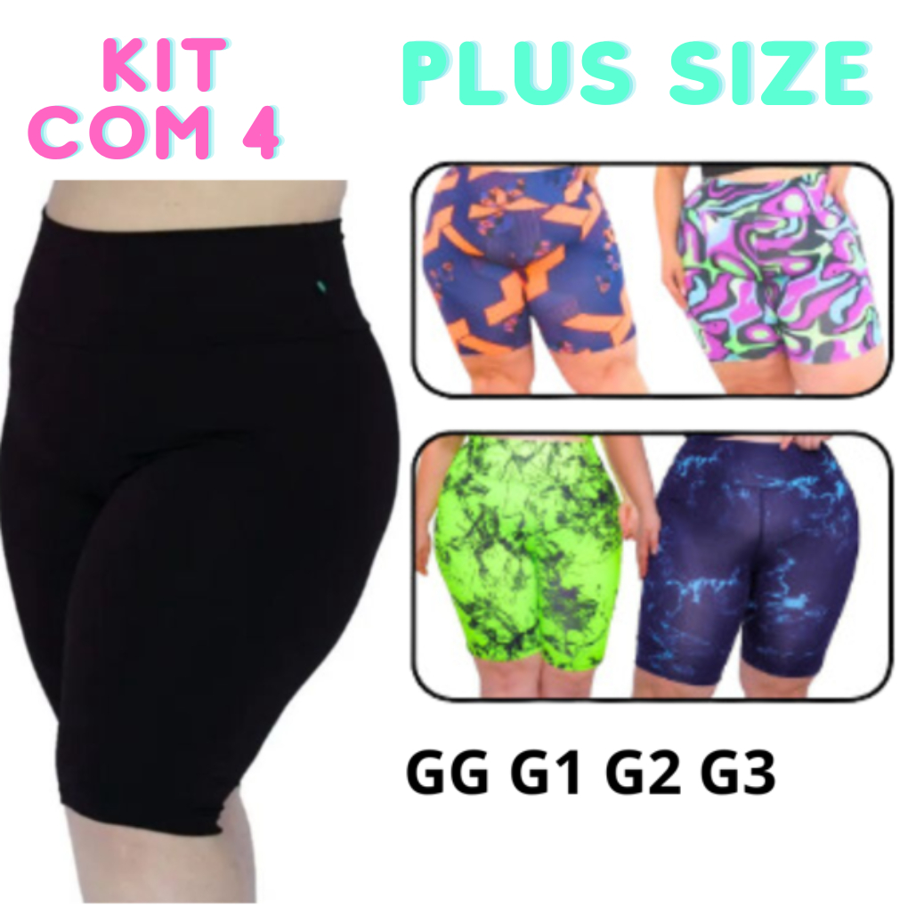 kit com 4 bermudas legging ciclista ginástica fitness feminina plus size do GG ao G3