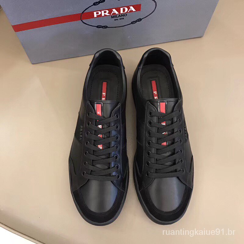Em Estoque/Homens Patos [Pacote Completo com Prada Novos Homens Avançado Calçados Esportivos Primeira Camada Casual de Couro Cinto Baixo