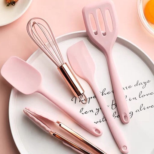 Jogo 5 Colheres De Silicone Cabo Inox Utensílios Cozinha