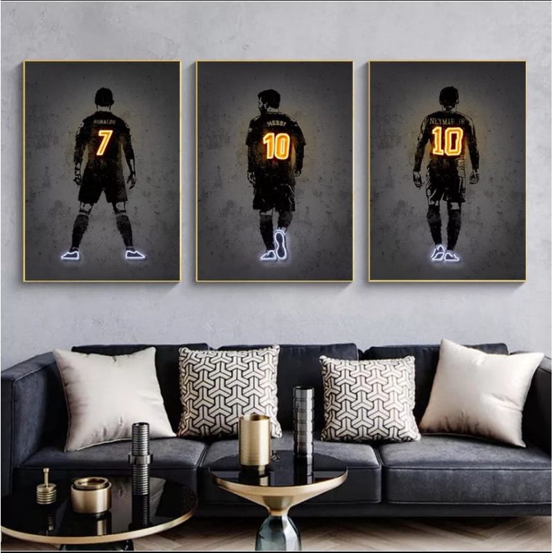 Trio Quadros Decorativos Mosaico Ronaldo 7, Messi 10, Neymar 10 Sala Quarto Escritório