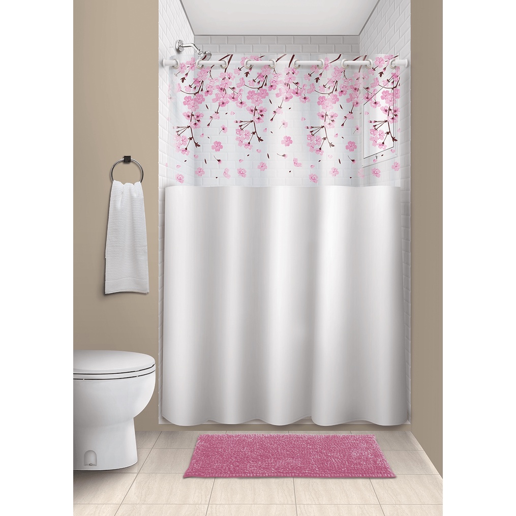 Cortina De Banheiro Box Com Visor Transparente Em PVC Anti Mofo Com Ganchos Vários Modelos