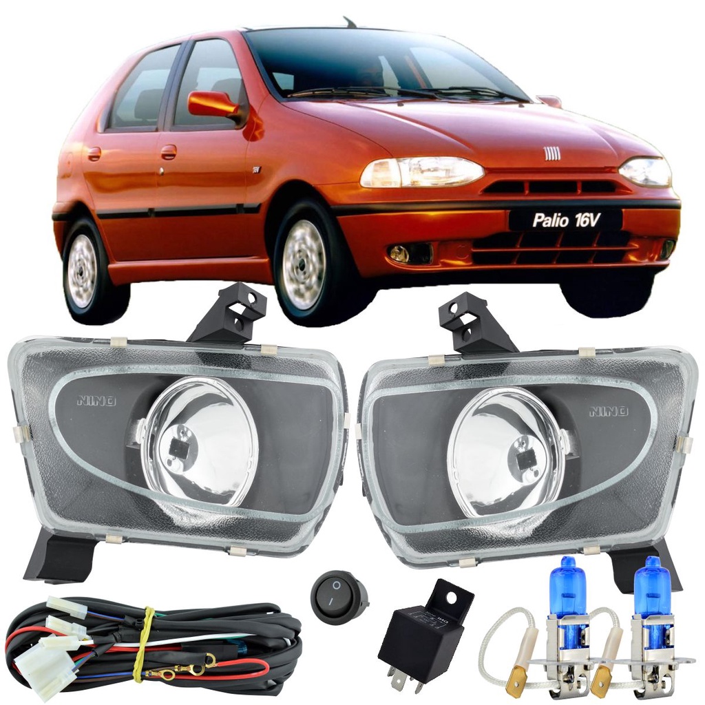 Kit Farol Milha Palio G1 1996 97 à 2000 Vidro + Lamp Chicote