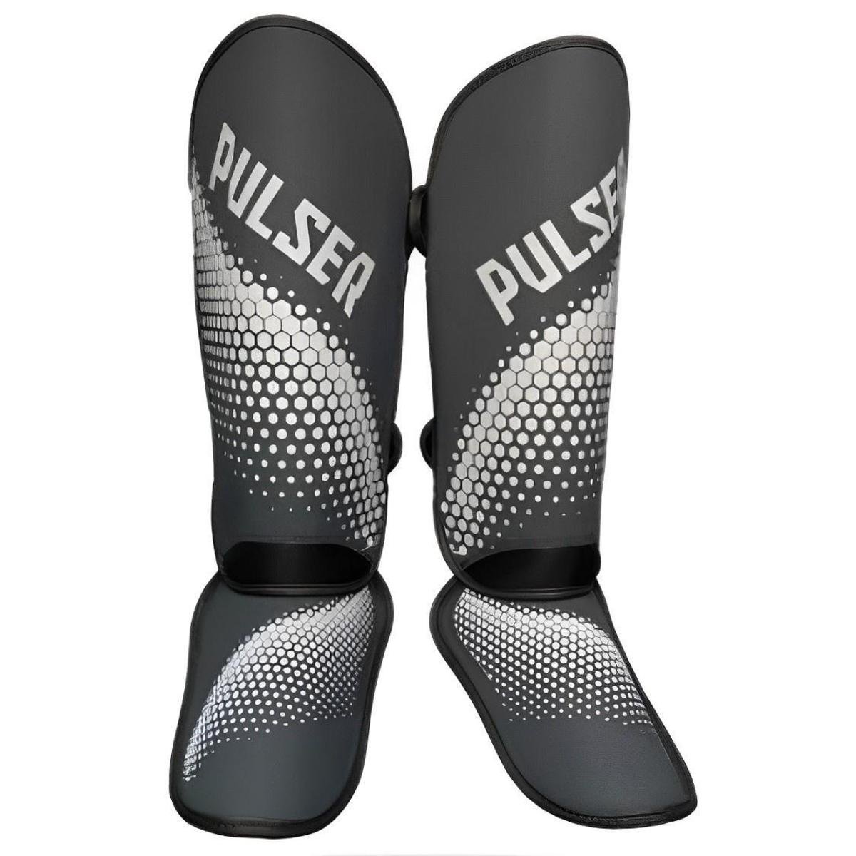 Caneleira Pulser Preta Grade Prata Protetor Canela Muay Thai Kickboxing 20mm PU Articulada