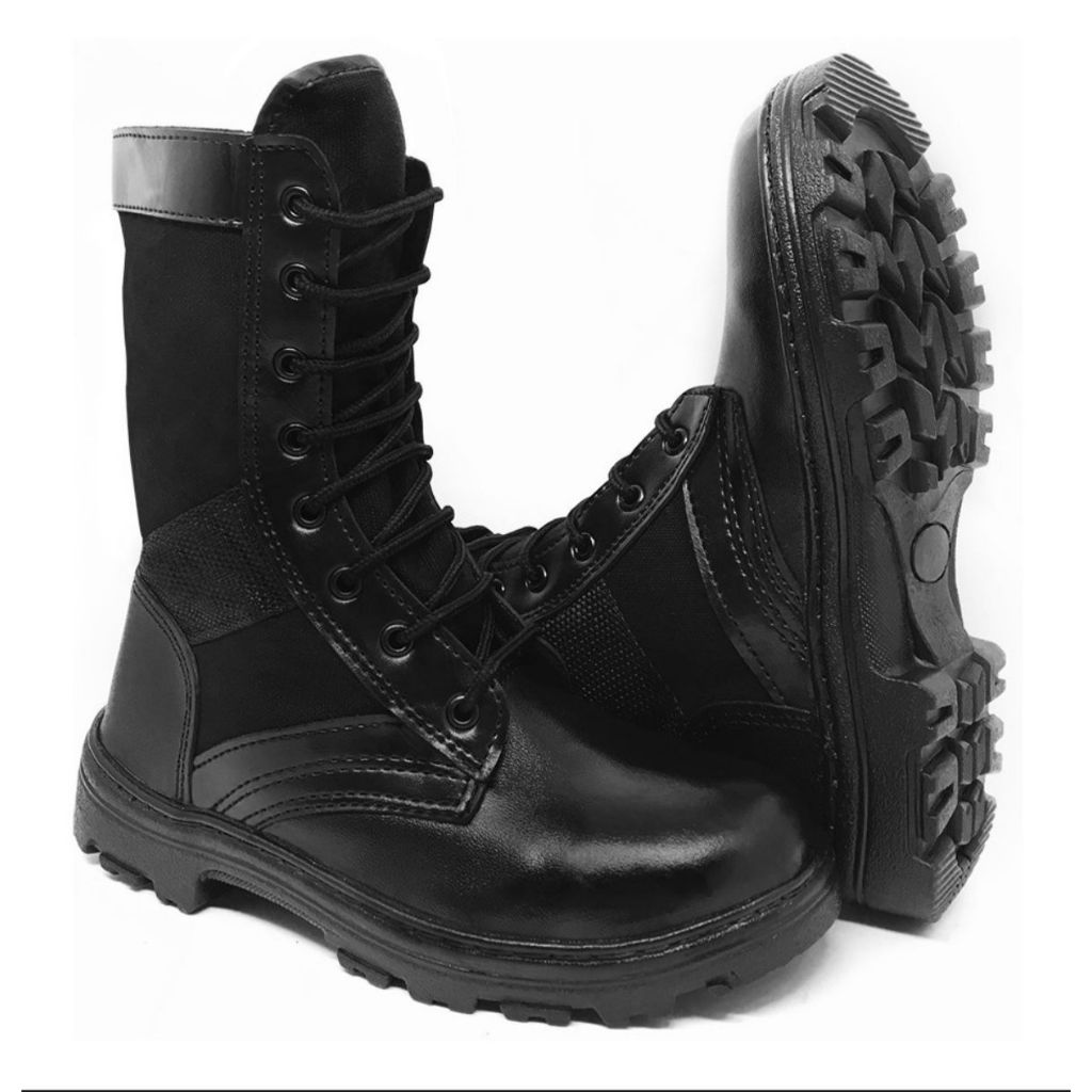 Coturno Militar Couro Legítimo + Calça Tática Rip Stop Profissional Masculina Uniforme Farda Preta 6 Bolsos