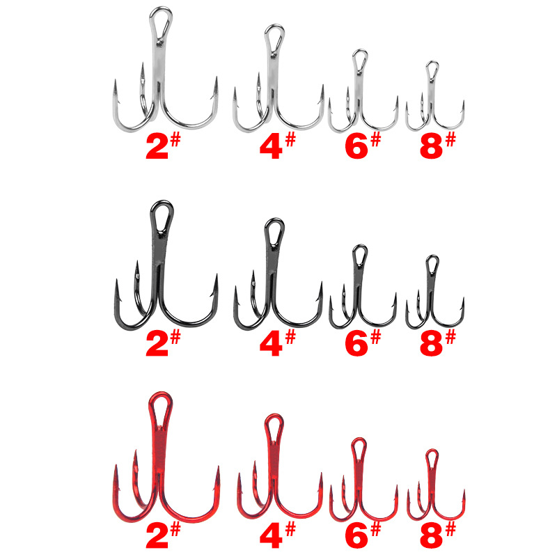 Caixa De 14mm-22mm De 20 pcs 14,7g 2 # 4 6 8 Anzóis De Pesca Em Metal De Alto Carbono Três Âncoras Mar De Níquel Vermelho Preto Branco Atum De Isca Triple Angling Barbs