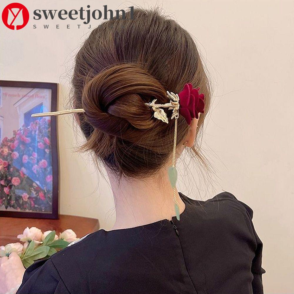 SWEETJOHN1 Palitos De Cabelo Feminino Elegante Flor De Rosa Retro Noiva Tassel De Metal Chinês Garfo