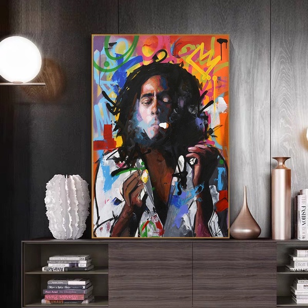 Quadro decorativo 1 peça 60x40 Bob Marley colorido abstrato grafite para quarto sala hall