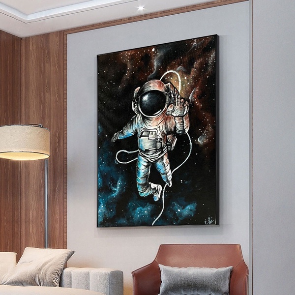 Quadro decorativo 1 peça 60x40 astronauta abstrato para sala quarto hall