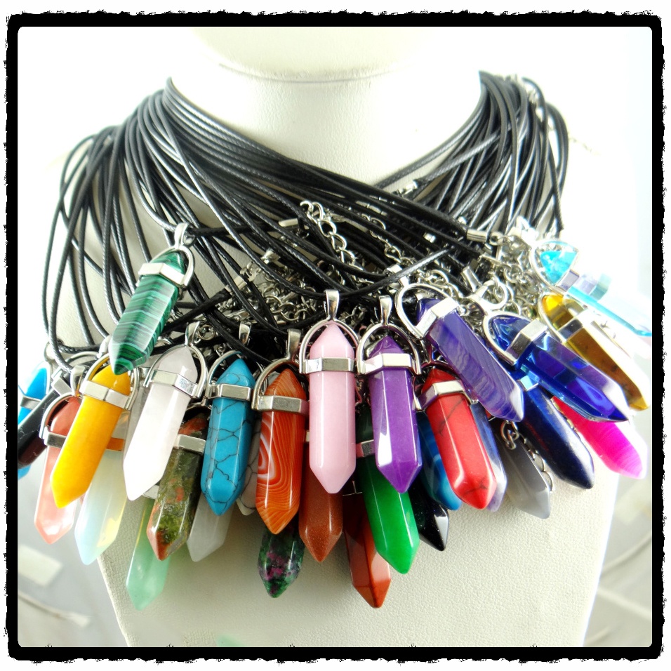 Colar pingente coluna hexagonal, pedra natural, opala cristal, colar correntes de couro