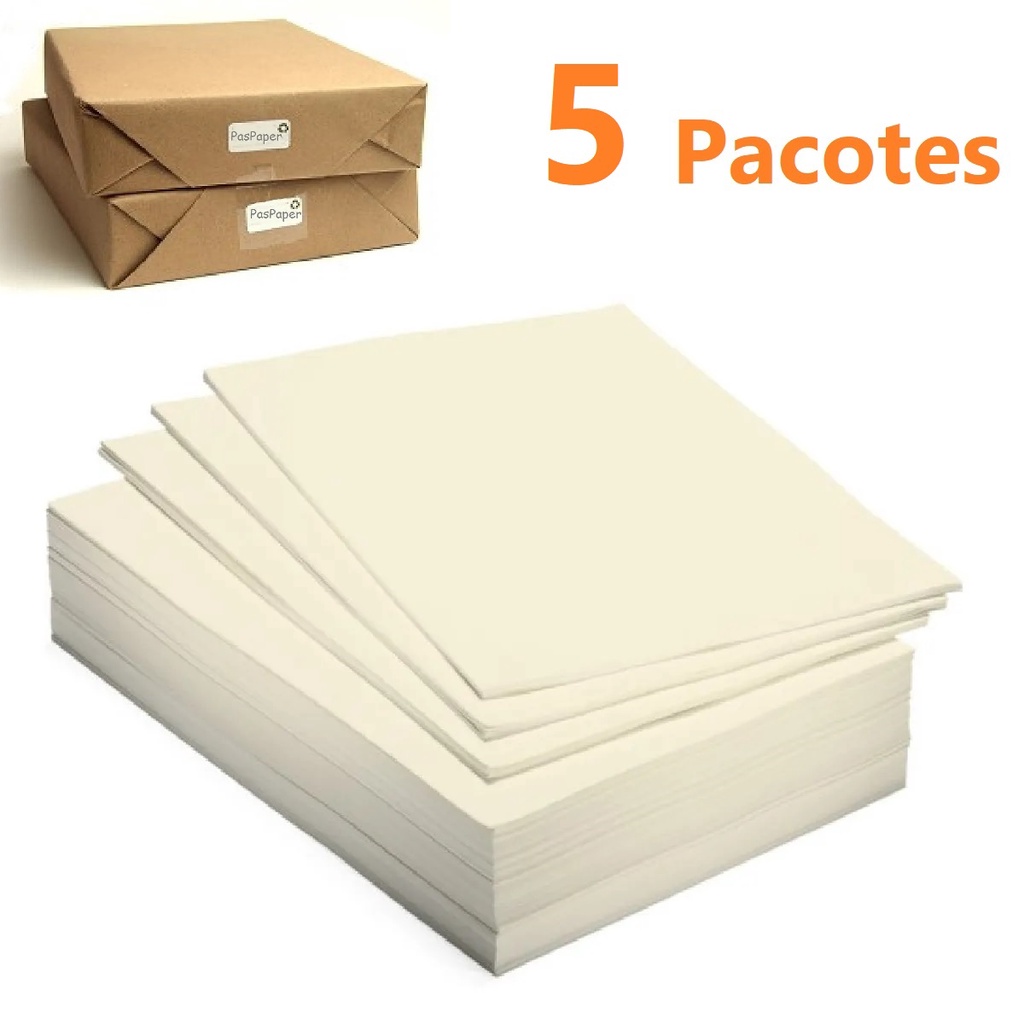 Papel Sulfite Creme A4 70g 210mmx297mm - 5 Pacotes com 500 folhas - Reciclado