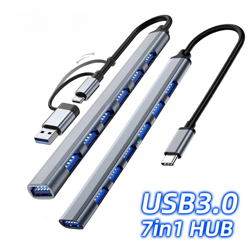 Adaptador USB Hub Splitter 7 Porta OTG USB3.0 Tipo C Alta Velocidade Para Laptop/PC/Keyboard/Mouse