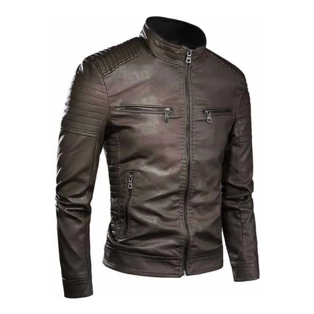 Jaqueta Masculina De Couro Slim Fit Casual