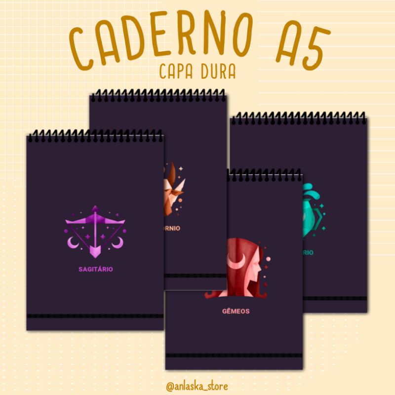 Caderno dos Zodíacos A5 com capa dura e espiral no topo/pontilhado/quadriculado/pautado/ Caderno de anotação.