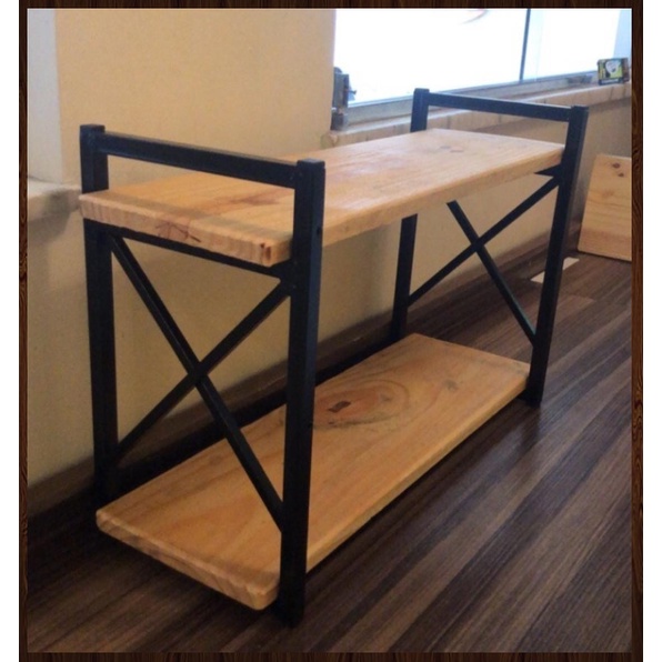 Prateleira x estilo industrial em ferro e madeira 37x20x60cm completa acompanha parafusos