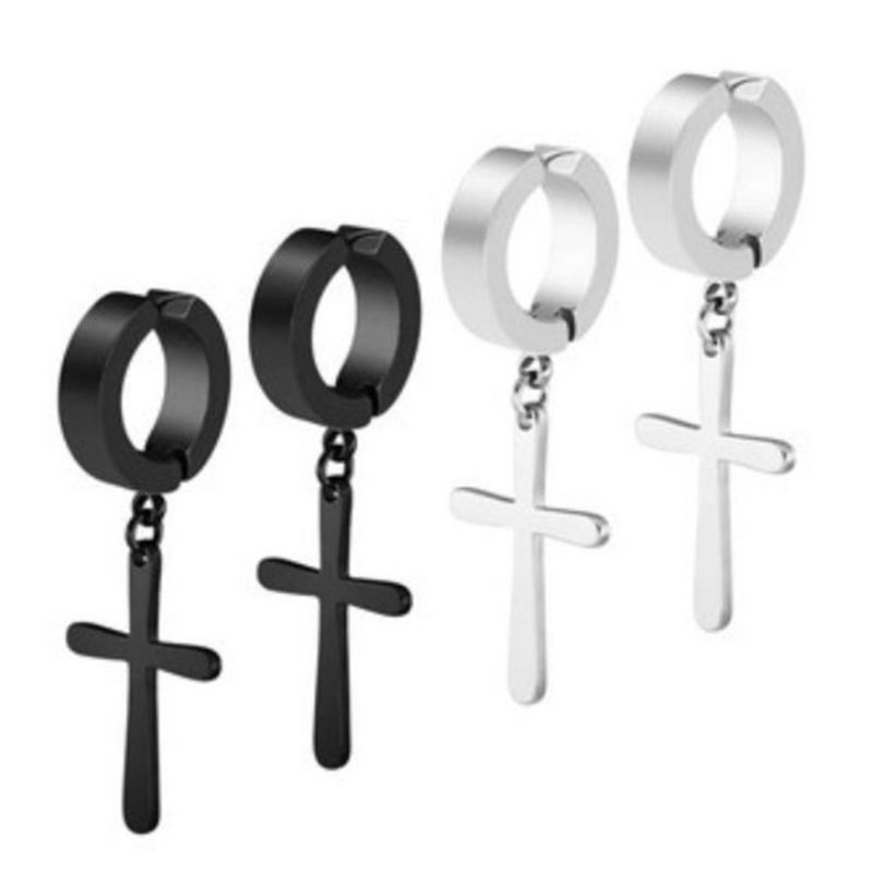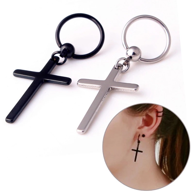 Par De Brinco Masculino Argola Aço Inox Cruz crucifixo Preto argola articulada antialérgico estilo dourado prata
