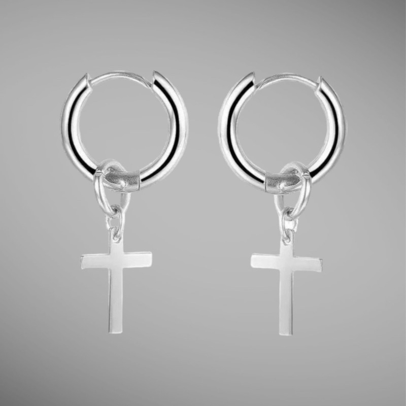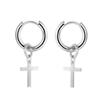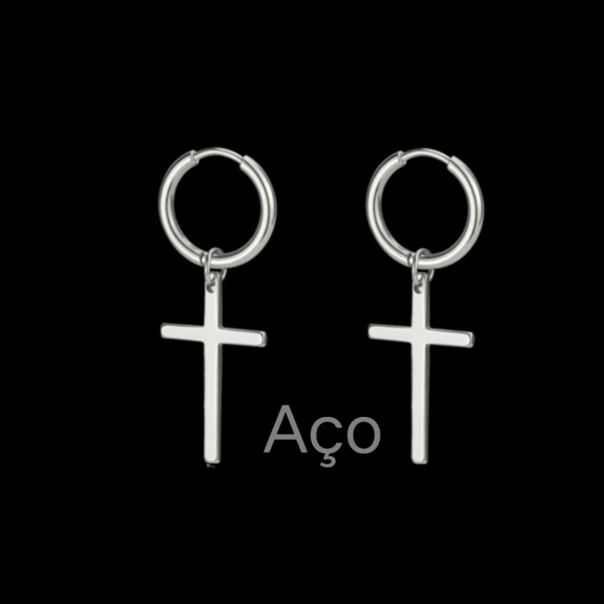 Par de Brinco de argola com cruz Aço Inox antialergico Kpop com cruz feminino e masculino