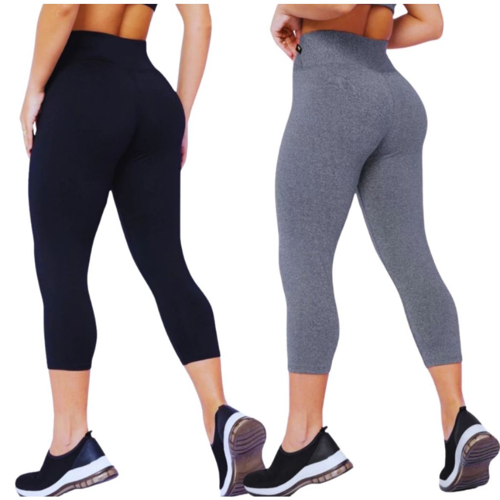 Kit 2 Leggings Capri Corsário Plus Size Feminina Liso Fitness Academia Dança Pilates