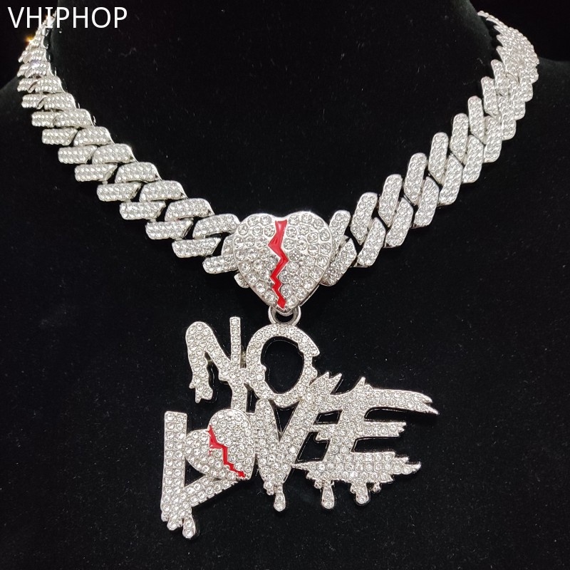 Homens Mulheres Hip Hop No Love Heart Pendant Necklace Com Corrente Cubana De 15mm Hiphop Iced Out Bling Necklaces Fashion Jewelry