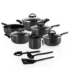 Jogo de Panelas 10 Peças Preto Antiaderente c/ Tampa de Vidro e Utensílios