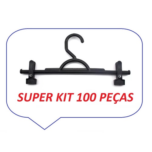 Kit 50 Cabides Preto Plástico Calça Bermuda Saia Shorts C/ 100 Presilhas