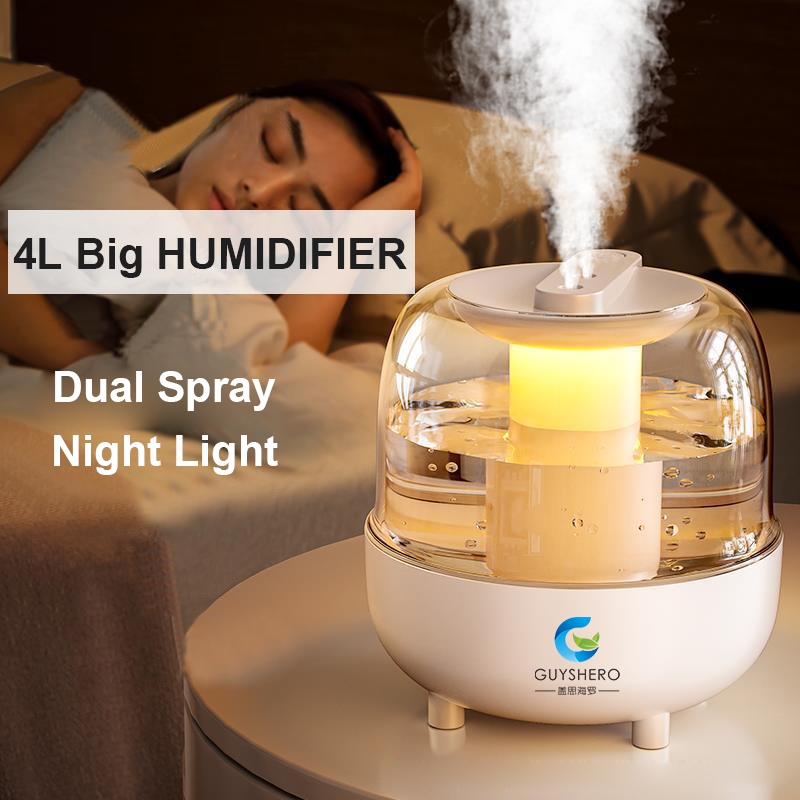 4L Umidificador Duplo spray De Ar Purificador Difusor De aroma Filtro De Algodão Para Umidificar Purificação Do Em Carro De Escritório Doméstico Com Luz Noturna 7 Cores led