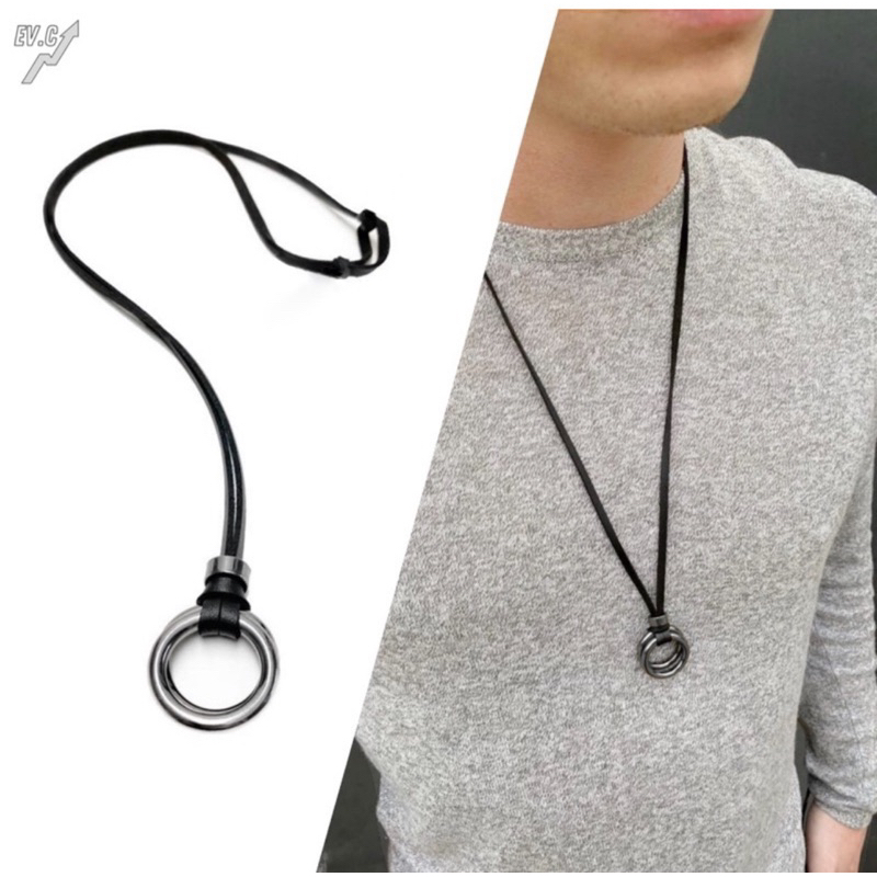 Colar Masculino Argola Grafite Couro Ecológico Cordão Homem Qualidade Envio Seguro Para todo Brasil