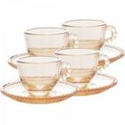 Cj 04 Xícaras de Cristal P/ Cafezinho C/ Pires Pearl Âmbar 80ml
