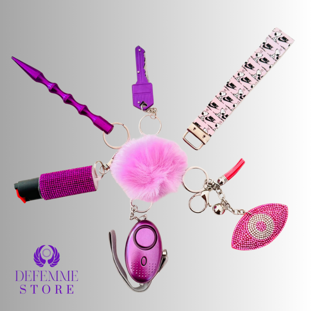 Kit Chaveiro 7 em 1 Feminino de Defesa Pessoal | Alarme Segurança p/ Mulheres Envio Imediato